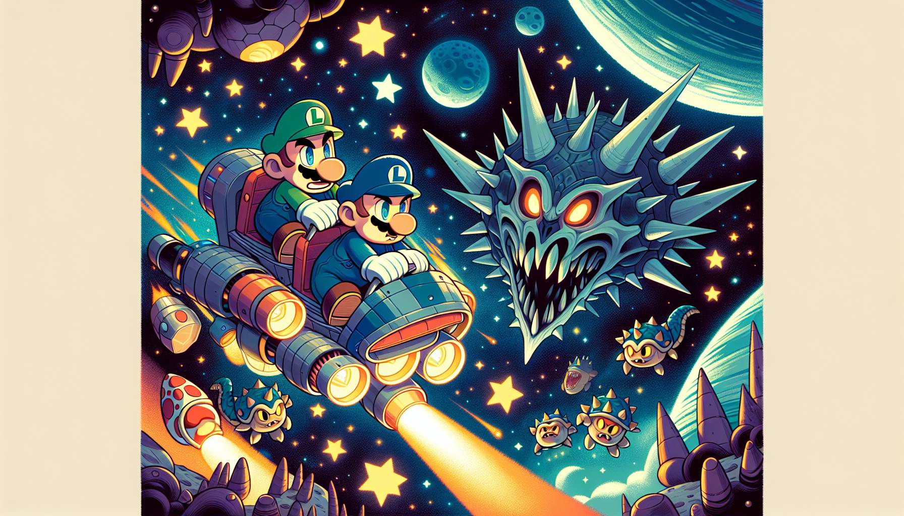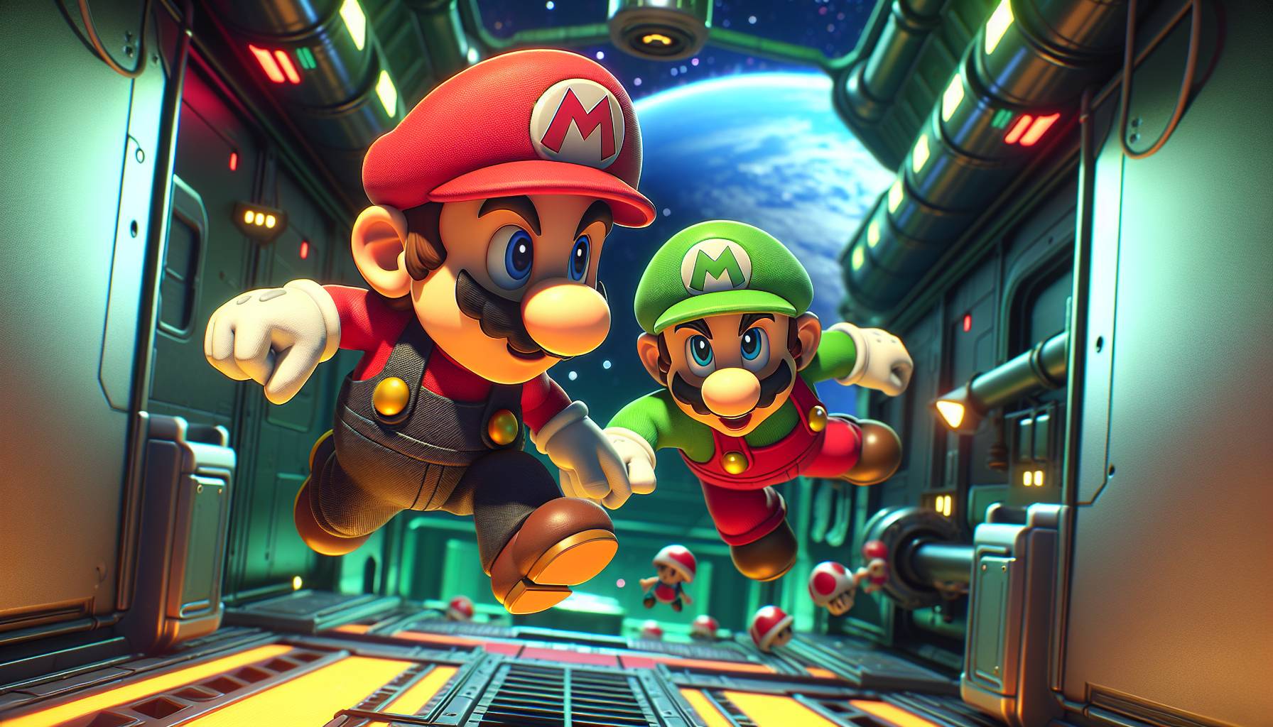 Thistime, Mario, Luigi, PrincessPeach, andToadheadintospace.